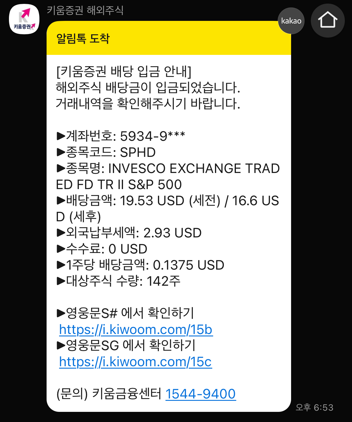 1월 31일에 배당금이 입금되었다고 카톡이 왔었는데 주말에 까먹었다가 이제야 정리를 합니다.