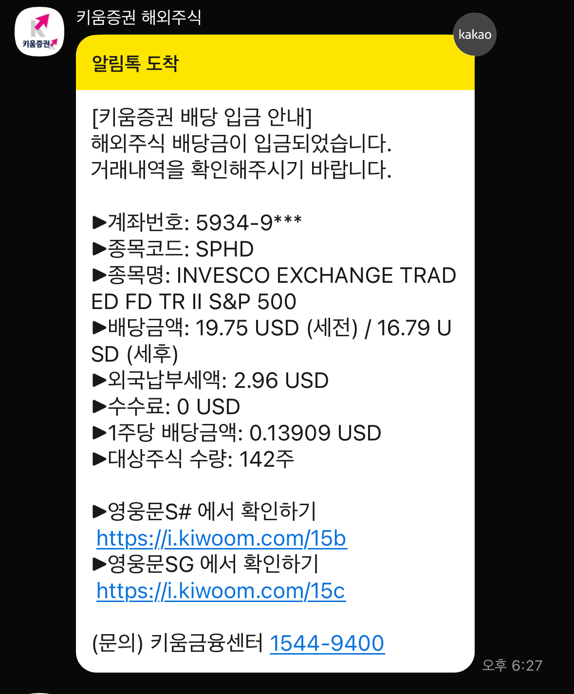 월배당인 SPHD는 이번 달도 어김없이 배당금을 지급해 주었습니다.