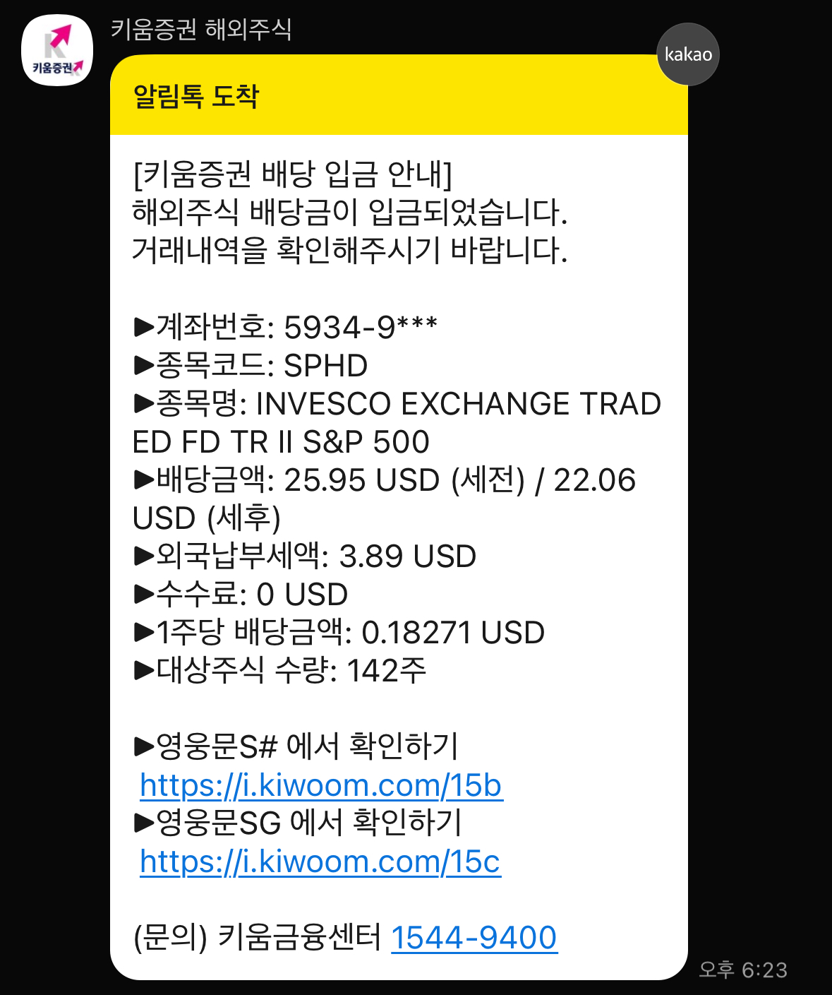 어제 배당금 입금 카톡을 받았는데 어제는 한국 코스피 지수가 4,000을 넘으면서 그쪽에 관심이 모두 몰려서 배당금이 입금에는 살짝 관심이 덜 했네요.