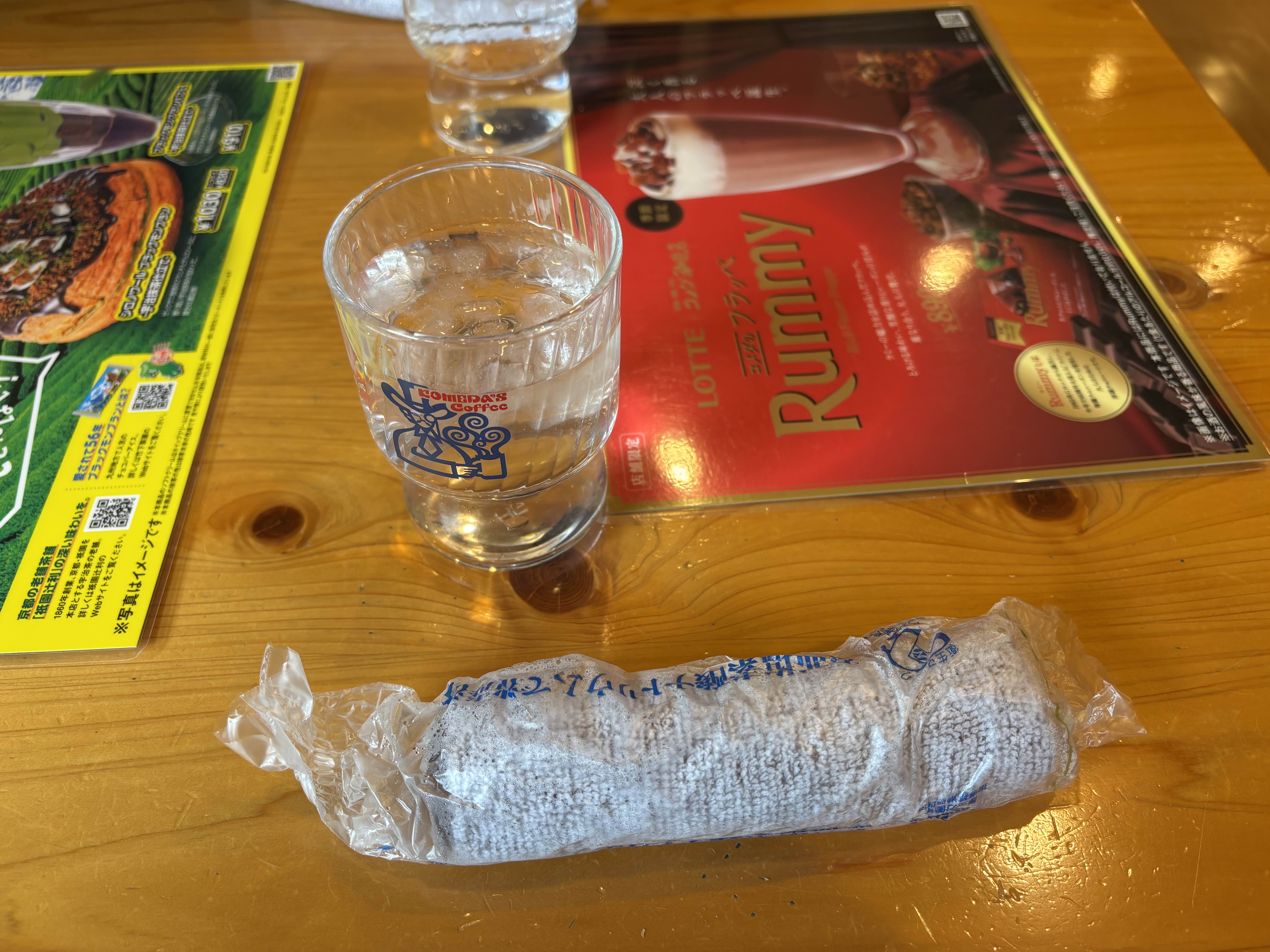따뜻한 물수건과 얼음물이 서빙되네요.
