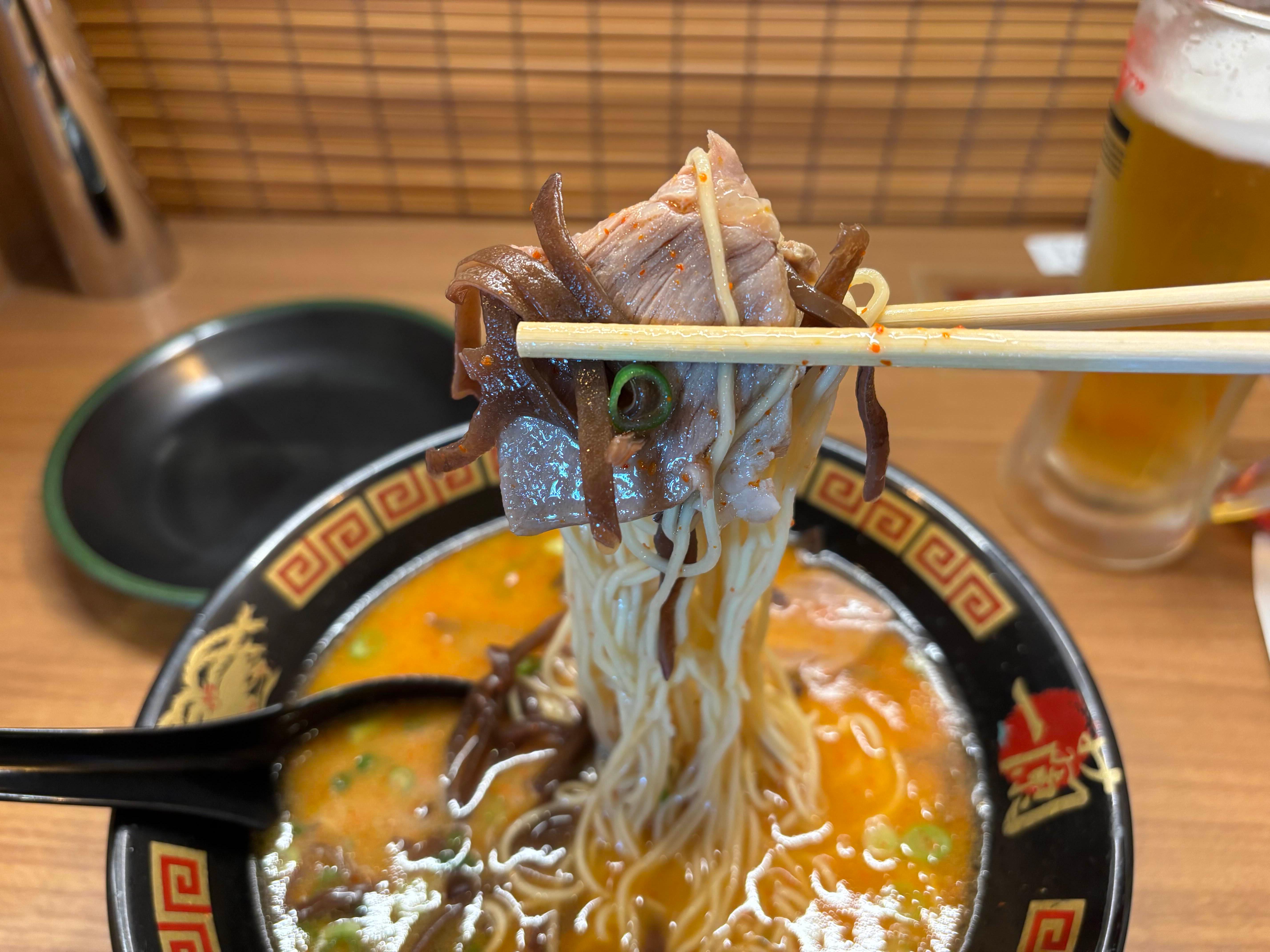 차슈와 목이버섯과 함께 먹는 라멘은 꼬들한 식감에 부드러운 고기가 어우러지며 정말 맛있습니다.