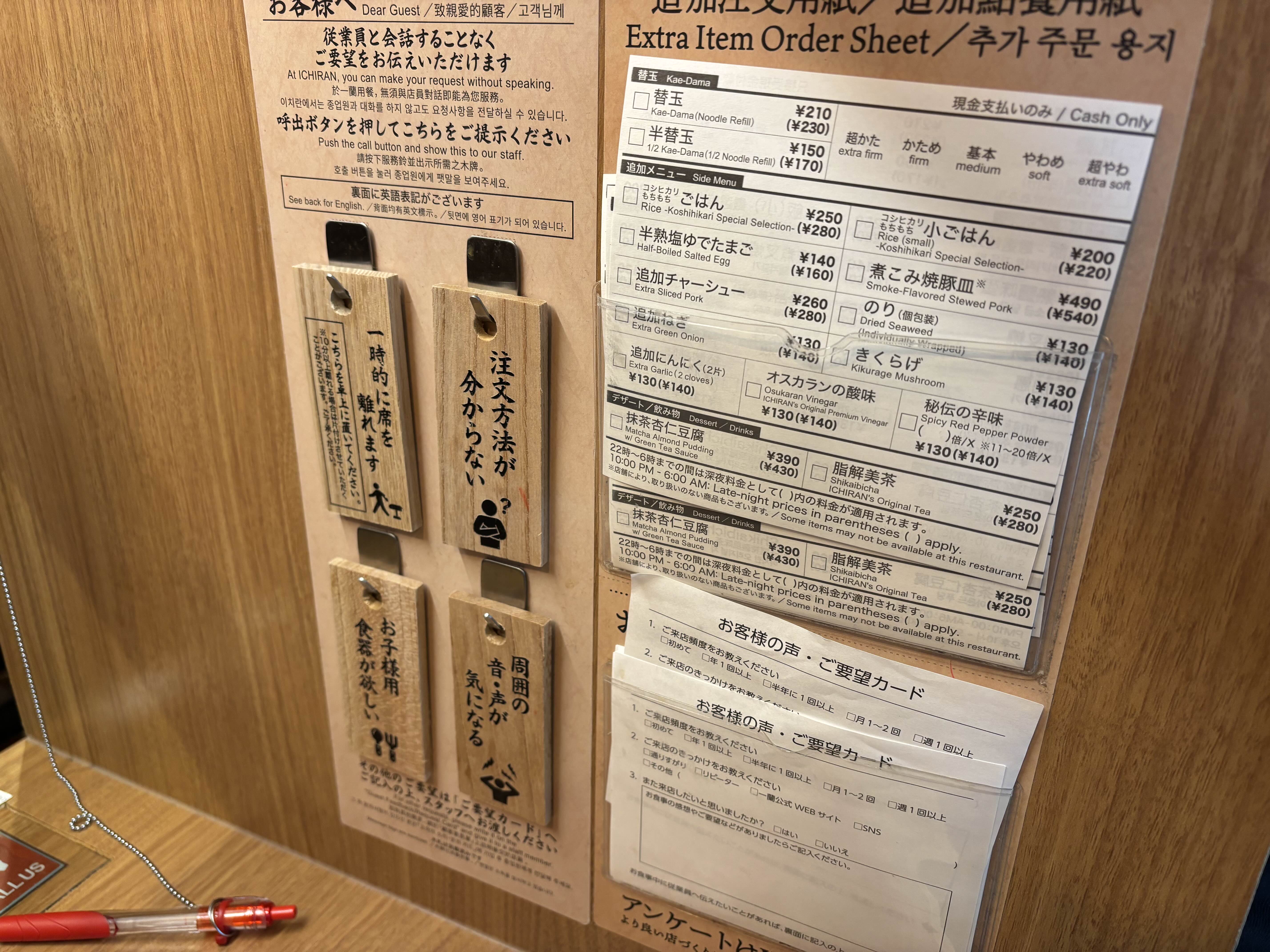 기다리면서 라멘을 어떻게 주문할지 고민에 빠지는 순간입니다.
