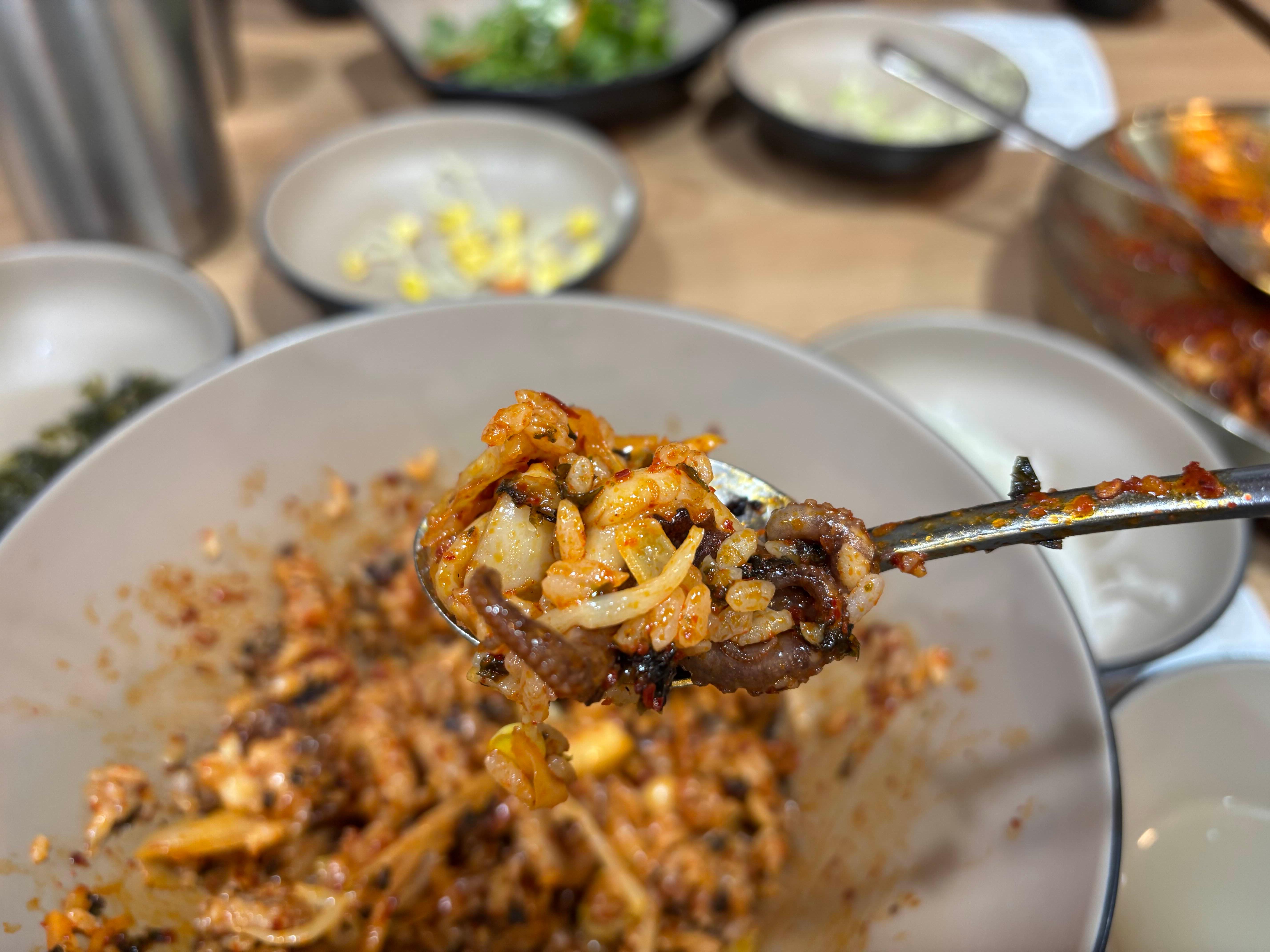 쭈꾸미를 먼저 한 입 먹어봤습니다.