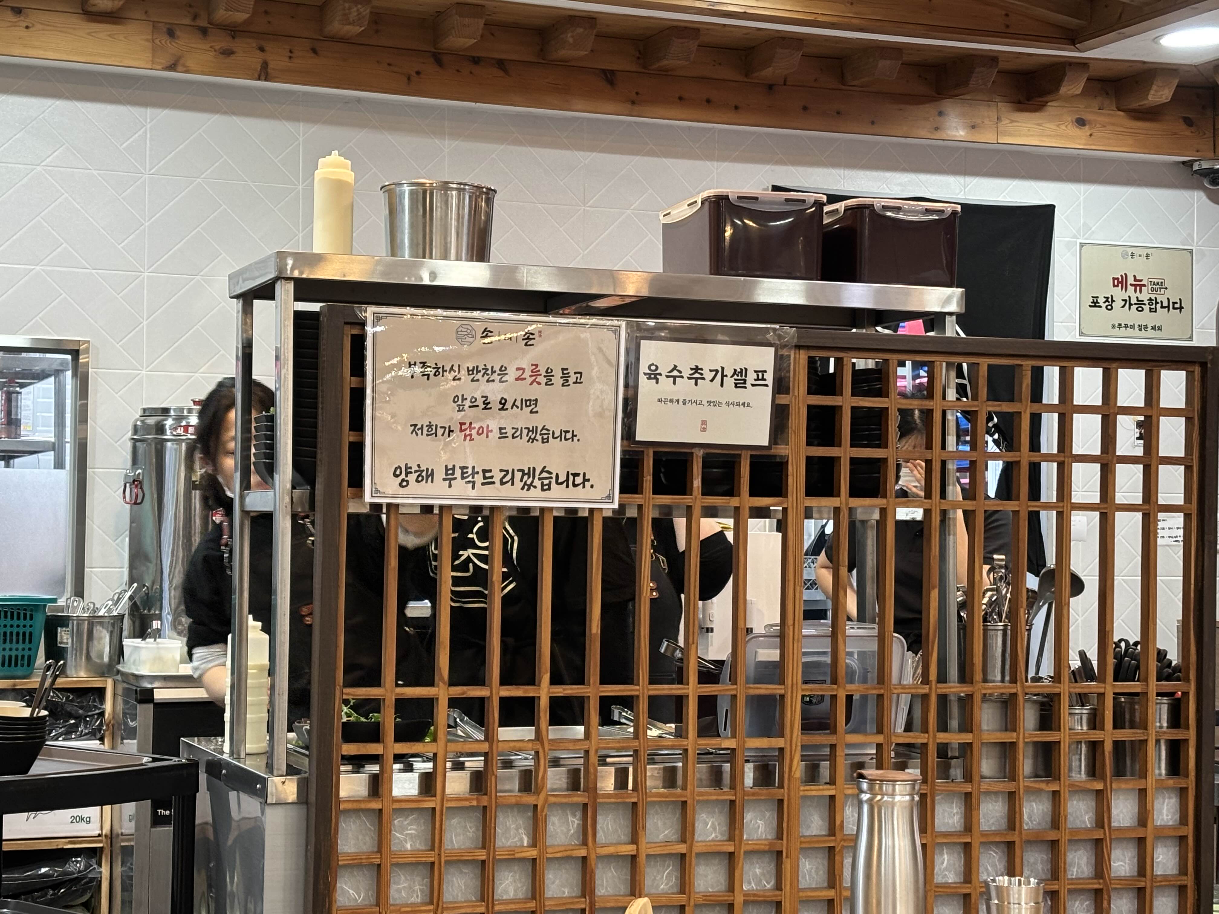 부족한 반찬은 그릇을 들고 가면 직원이 담아줍니다.