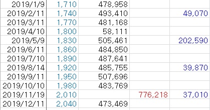 2019년도에는 11월 한번만 매도 할 수 있었습니다.