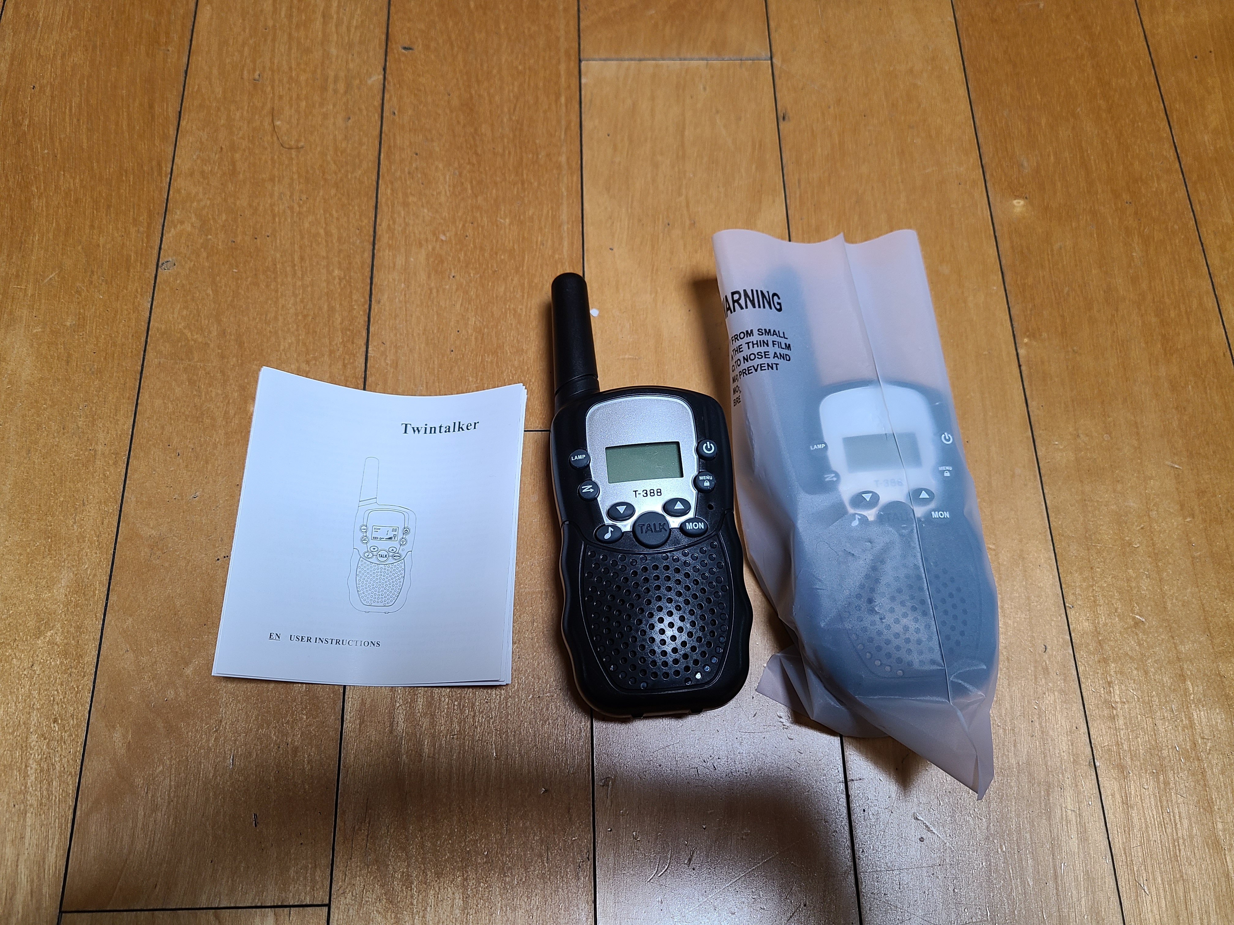 언박싱을 하니 달랑 메뉴얼 하나에 무전기 두개가 전부더군요.